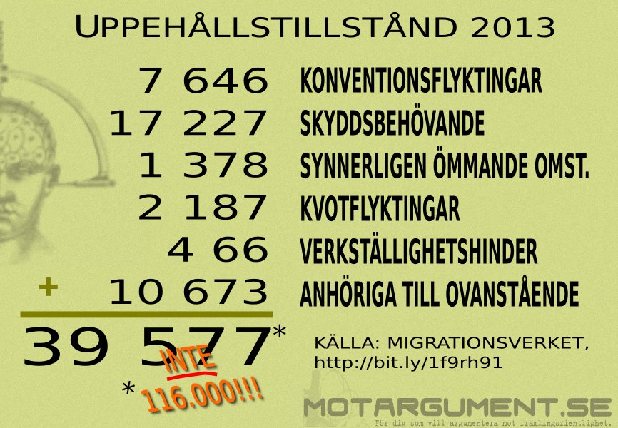 Alltså – hör man massinvandringsmyten om 116.000 PUT-invandrade år 2013, eller liknande siffra, och jämför med Migrationsverkets tabell, så kan man lätt se att ”de som är kritiska mot invandringspolitiken” medvetet eller omedvetet buntat ihop samtliga kategorier och försöker måla upp alla dessa som immigranter.