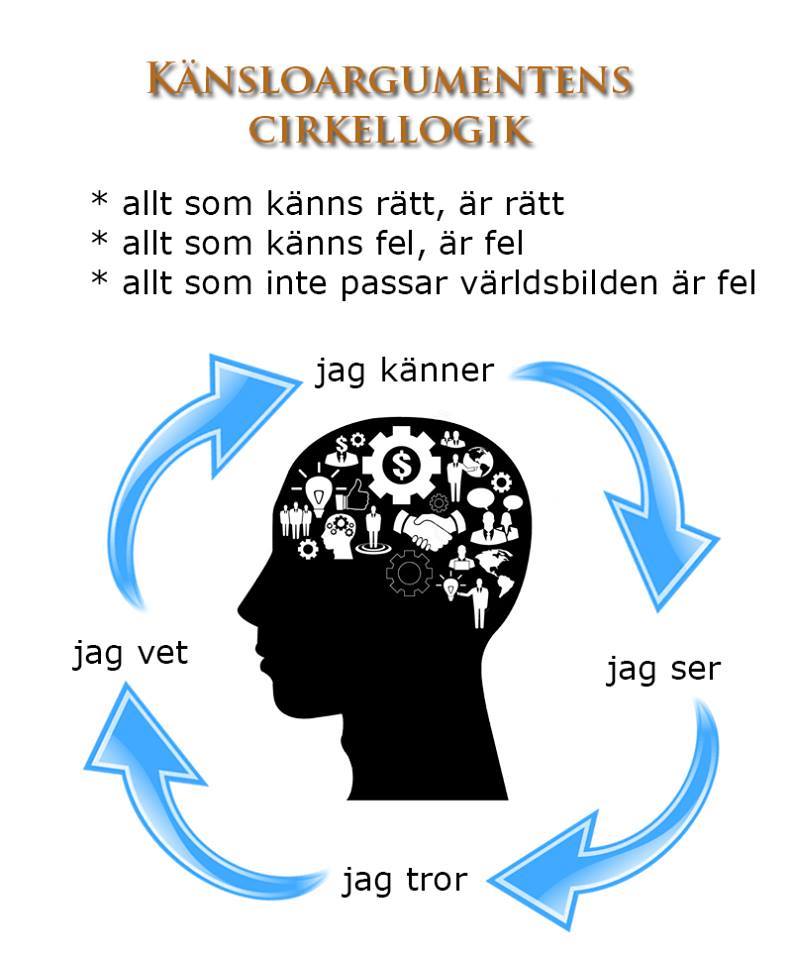 Jag ser – jag tror – jag känner och eftersom jag ser det jag känner, så är det sant. Ett självrättfärdigande resonemang.
