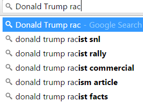 Som motargument anges att ”Donald Trump rac” ger ”Donald Trump racist”.