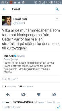 Så här kan det låta när någon reagerar på att ”muhammedanerna” tar emot pengar från utlandet.