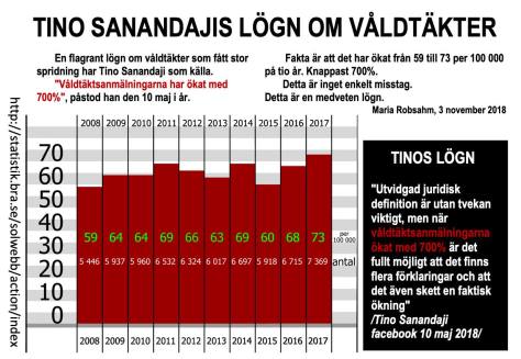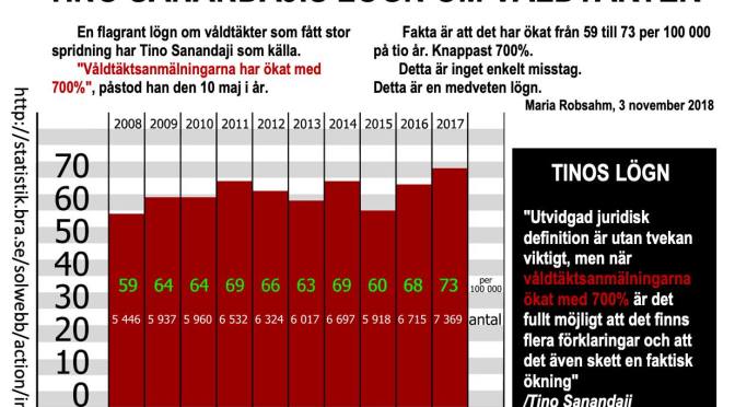Att våldtäktsanmälningarna skulle ha ökat med 700 % är en lögn som blivit viral. Anledningen är att det är nationalekonomen och debattören Tino Sanandaji som gjort uttalandet. Sanandaji är i mångas ögon ett aktat namn. Den korrekta siffran är 24 % på tio år. En ”viss” skillnad.