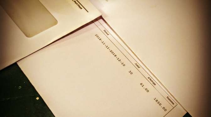 Foto: Privat. Taget 9 november 2018.61 kronor om dagen blir ca 1 830 kronor i månaden.