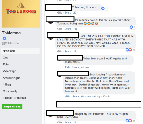 Alternativ media som Samhällsnytt och Fria tider har naturligtvis slagit upp nyheten stort. De senaste dagarna har Twitter och Facebook exploderat av ilska mot bakgrund av Toblerones påstått ”hemliga islamiseringsagenda”.