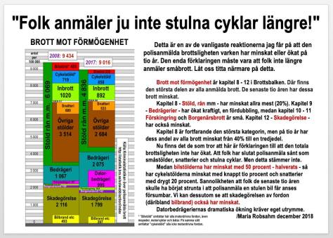 Medan bilstölderna har minskat med 50 procent – halverats – så har cykelstölderna minskat med knappt tio procent och snatterier med drygt 20 procent. Sannolikheten att folk de senaste tio åren skulle ha börjat strunta i att polisanmäla en stulen bil får anses försumbar.