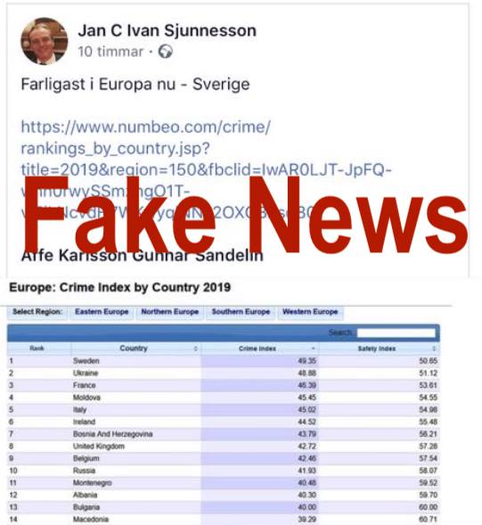 Det virvlar förbi ett påstående om att Sverige skulle vara hårdast drabbat av brottslighet i hela Europa. De som sprider detta är ”the usual suspects” och jag tror faktiskt inte att de själva tror på tramset.
