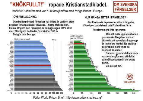 Det pågår en alarmism i den svenska debatten som gör gällande att de svenska fängelserna är överbelastade. Sanningen är att bland europeiska länder är det endast Island och Finland har färre fängelsekunder än Sverige.