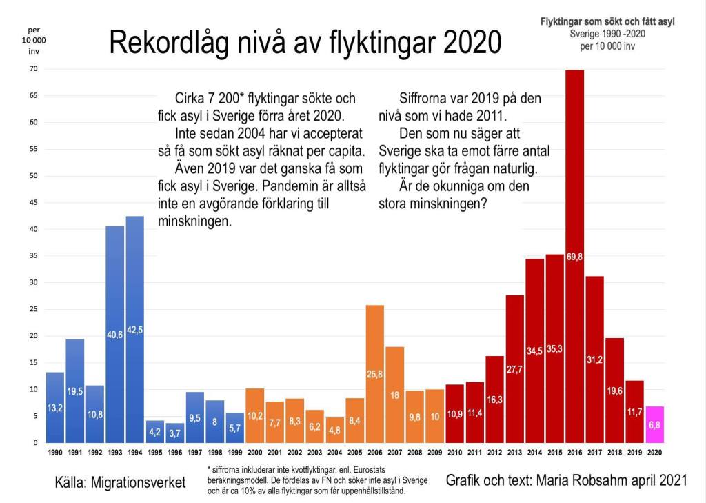 Cirka 7 200* flyktingar sökte och fick asyl i Sverige förra året 2020.