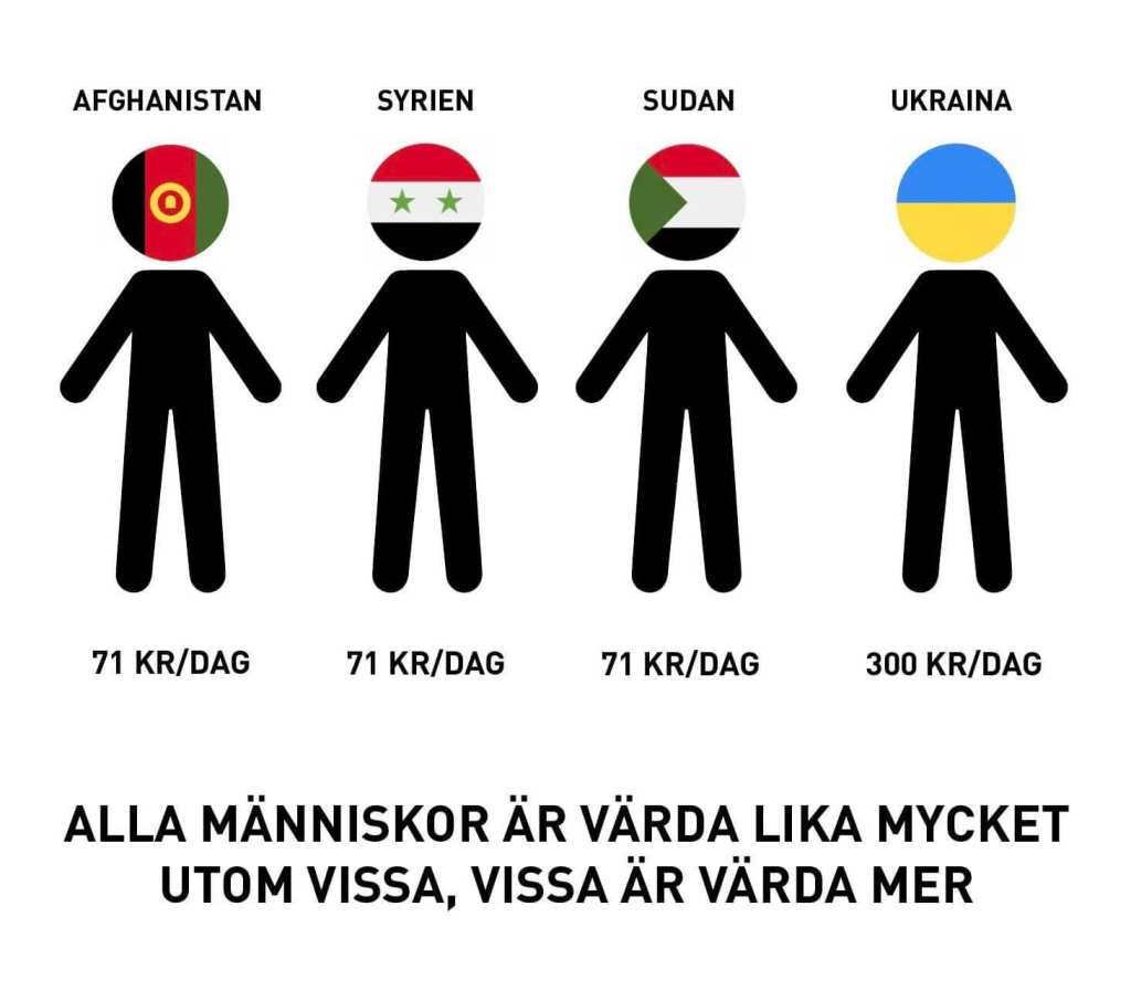 Det är beklagligt att Tidöregeringen värderar flyktingar från Ukraina högre än flyktingar från alla andra länder. Förutom att det är djupt orättvist kommer det att skapa splittring såväl flyktingar som människor emellan.