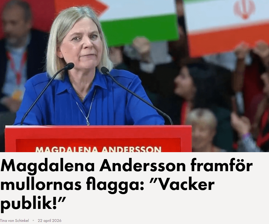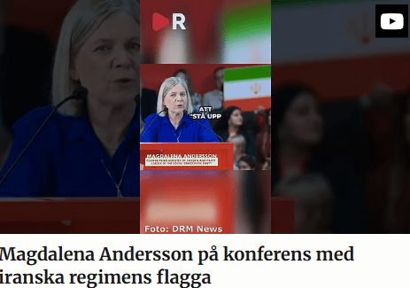 Tre SD-propagandakanaler, Riks, Samnytt och Samtiden, uppvisar (medvetet?) bristande kunskap i sin iver att göra poäng av att ”iranska regimens flagga” syns i bakgrunden, då Magdalena Andersson (S) talar vid en konferens i Spanien för ”global progressiv mobilisering”. Syftet är naturligtvis att få sina läsare att tro att Socialdemokraterna skulle stödja den iranska regimen.