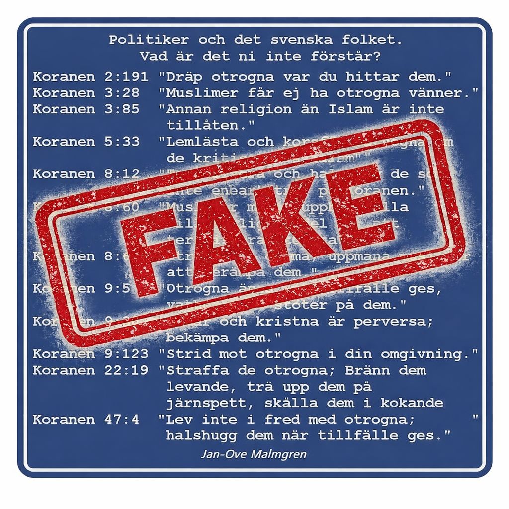 Exempel på desinformation och lögnpropaganda om Koranen.