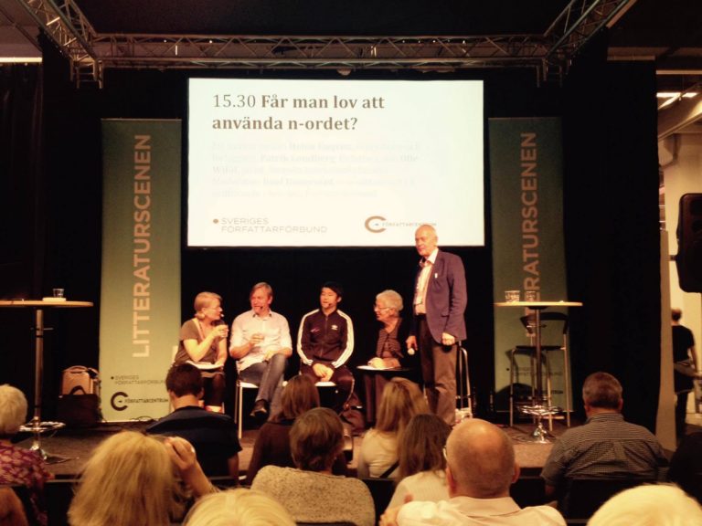 Seminarium på bokmässan. Samtalet utgick från frågeställningen: ”Får man lov att använda n-ordet?”