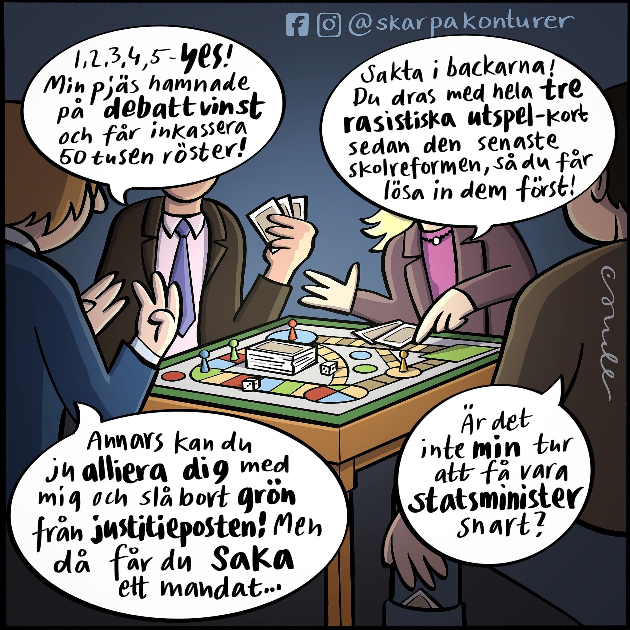 Motargument publicerar karikatyrteckningar av Skarpa Konturer, som du kan följa på instagram och på FB.