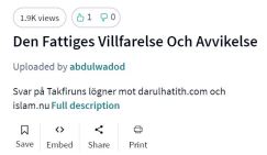 ”Tolerans har förstört världen och religionen… Satan är ute efter detta… De otrogna… förtalar muslimer och ljuger om dem. Det går inte att vara tolerant mot dem…” /Darulhadith.com