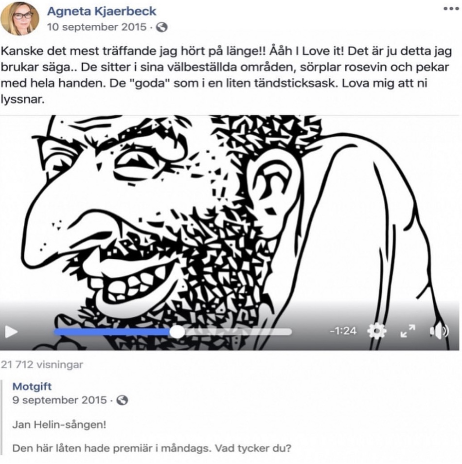 ”För ett antal år sedan hjälpte jag en kamrat att flytta. Vid ett tillfälle pekade han på en garderob och sa: ”Där har jag gömt mitt judeguld”. Lite senare så invände han emot att vi skulle lämna saker obevakade nere på gatan, eftersom det ”kunde komma en jude och stjäla det”. Till detta svarade jag att juden nog ville ha tillbaka sitt guld.” (Källa: Samtiden)