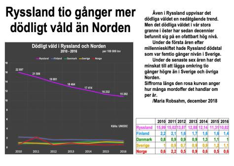 Bifogade graf visar antalet män och kvinnor som 1910 – 2017 utsattes för dödligt våld i Sverige per 100 000 invånare i femårsgenomsnitt.