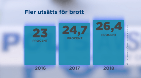 ”Enligt Brottsförebyggande rådets nationella trygghetsundersökning utsattes fler för brott förra året”. (Källa: TV4Play.se)