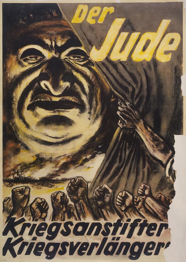 ‘The Jew warmonger, War Elongater”. 1940-tal. Tysk antisemitisk poster. Den anklagar judar för att ha startat andra världskriget. (Hans Schweitzer under pseudonymen ”Mjolnir”)