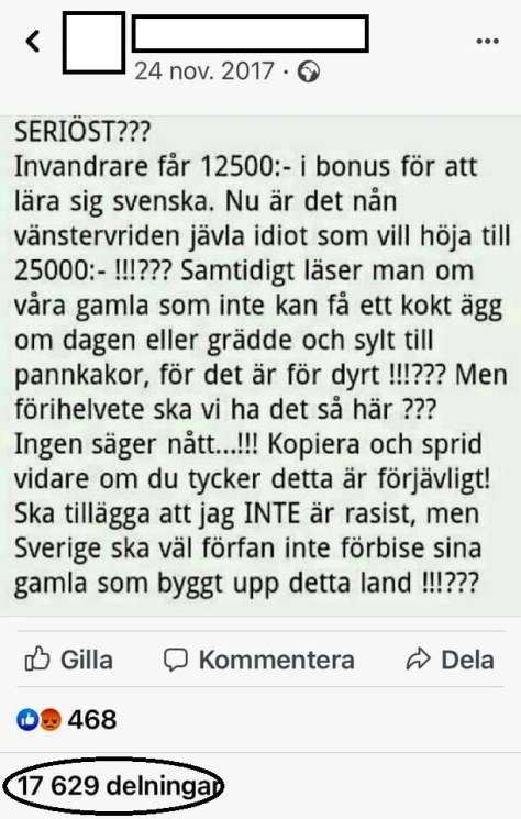 - Internets och sociala mediers baksida, som innebär att vinklade nyheter, historier och direkta faktafel snabbt får spridning.