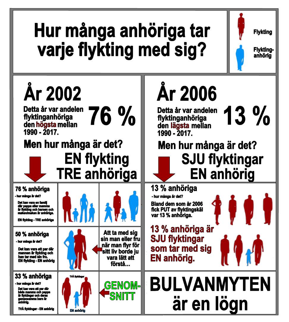År 2006 var de anhöriga bara 13 % – i klartext var det då SJU flyktingar som tillsammans tog med sig EN anhörig. (bild nr 2)