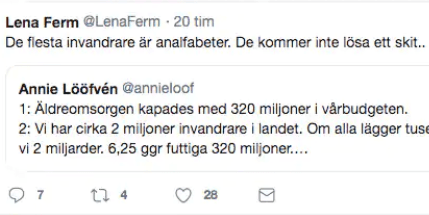 Hon har också delat ett islamofobiskt inlägg som varnar för den “arabiska invasionen” av Europa. Där hon (återigen) bygger på en lögn om att araber och muslimer försöker “invadera” Europa.
