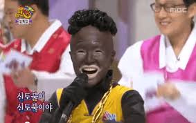 Speciellt grov är rasismen mot afrikaner i Japan. Bildbanken pratar om blackface, vilket innebär att skådespelare målar sig svarta. Ja, det var vanligt förr, numera nästan inte alls i Europa och USA. I Asien är det alltjämt vanligt. Denna bilden är från Japan.