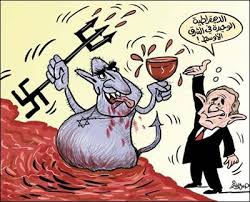 Det finns gott om teckningar som avbildar judar som djävlar i arabisk media. Denna här nedan som utmålar judar som råttor laddades upp på Fatahs Facebooksida för några år sedan.