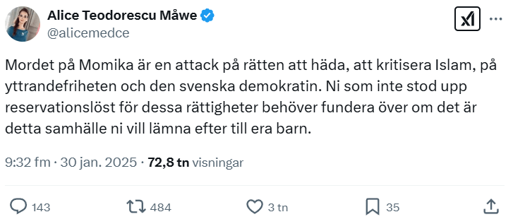Vi får inte glömma att vi alla är en gemensam kollektiv del av mänskligheten, och har ett ansvar att ta avstånd från illgärningar, oavsett vem eller vilka som utför dem. Vi måste alla tydligt markera, och ta avstånd från, rasism, nazism, islamism och kommunism, och alla brott och skoningslösa handlingar, samt förtryck, som dessa genererat genom historien, och än idag.