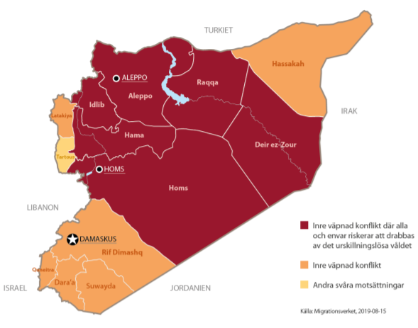 Syrien är, till viss del, bedömt som relativt säkert. Men i många delar av landet finns fortsatta risker för att invånare utsätts för ”urskillningslöst våld”. Vi kan INTE skicka tillbaka människor som har ett uppehållstillstånd i Sverige, och vi kan heller inte neka alla syriska asylansökningar.
