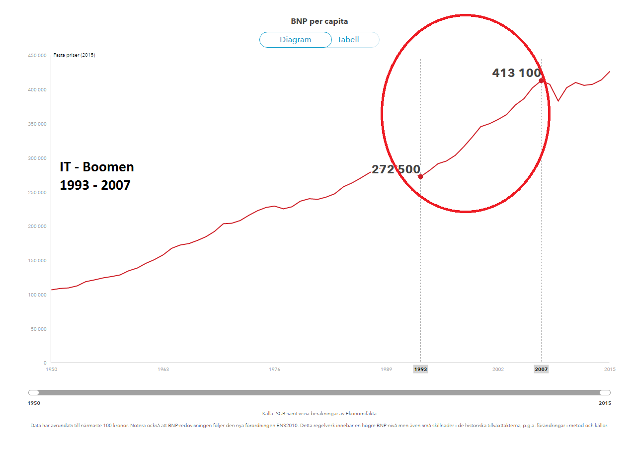 Därefter fortsatte den svenska ekonomin och BNP:n mot allt mer spektakulära höjder.