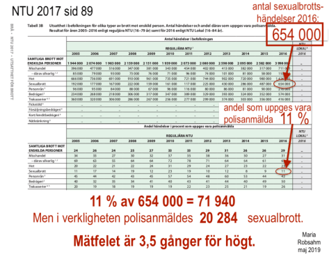 Enligt NTU polisanmäldes 71 940 sexualbrott i Sverige 2016. Men i verkligheten anmäldes 20 284. Det är ett mätfel som är 3,5 gånger för högt.