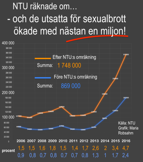 NTU räknade om – och de utsatta för sexualbrott ökade med nästan en miljon – eller 879 000 – räknat på hela perioden. Det är mer än dubbelt så många.