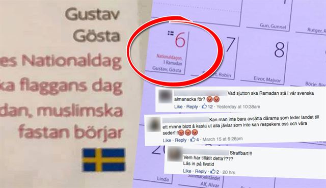 Jag har tidigare på Motargument berört ämnet ”svenskfientlighet” och ”sverigevänlighet”, något man kan betrakta som ett näst intill outtömligt ämne. Det som gör ”sverigevännerna” förbannade denna gång är att den muslimska fastemånaden ramadan infaller den 6 juni. Den 6 juni är Sveriges nationaldag och fick så sent som 2005 helgdagsstatus. Någon har uppmärksammat en kalender där det, vid sidan av Sveriges nationaldag och Svenska flaggans dag även finns en notering om att ramadan, den muslimska fastemånaden, börjar.