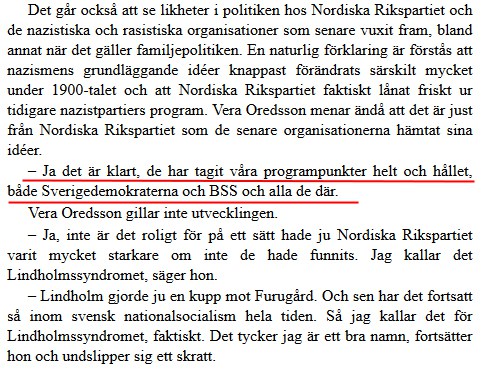 Jag kan dock inte ge mig i kast med att lyfta fram SD:s rasism utan att först nämna det här med nationalismen. Dessa två ideologiska aspekter lever i ett närmast symbiotiskt förhållande till varandra. Frågan om folket (vilka är folket?) är central för SD och principprogrammets första punkt – om demokratibegreppet – slutar i ett resonemang om just vilka detta ”folk” i begreppet folkstyre egentligen är, eller bör vara.