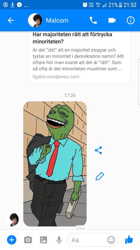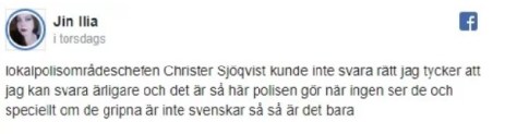 ”Vad har Sverigedemokraterna med rasism att göra? Det är helt befängt! Enligt din verklighet så är 1.1 miljoner väljare rasister?” (Källa: Dalademokraten)
