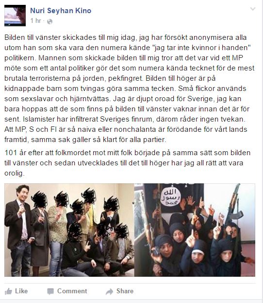 Artikeln, som fått den klargörande rubriken ”VIDEO: Någon tänder eld ovanpå Notre Dame – bildernas äkthet bekräftas av nyhetsbyrå”, är skriven av flitige påläggskalven Simon Kristoffersson. Rubriken fastställer med all önskvärd tydlighet att branden var anlagd. Artikeln avslutas, efter att Kristoffersson fyllt den med alla ”bevis” som cirkulerat runt i sociala medier, med att påpeka hur många attacker som sker mot kyrkor och kristna symboler.