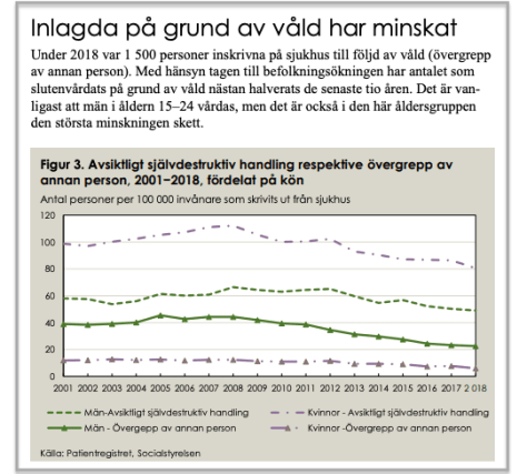 I onsdags 25 september kom Socialstyrelsens årliga uppdatering med siffror över antalet patienter som 2018 fick vård för ”Skador och Förgiftningar” – där skador av våld ingår.
