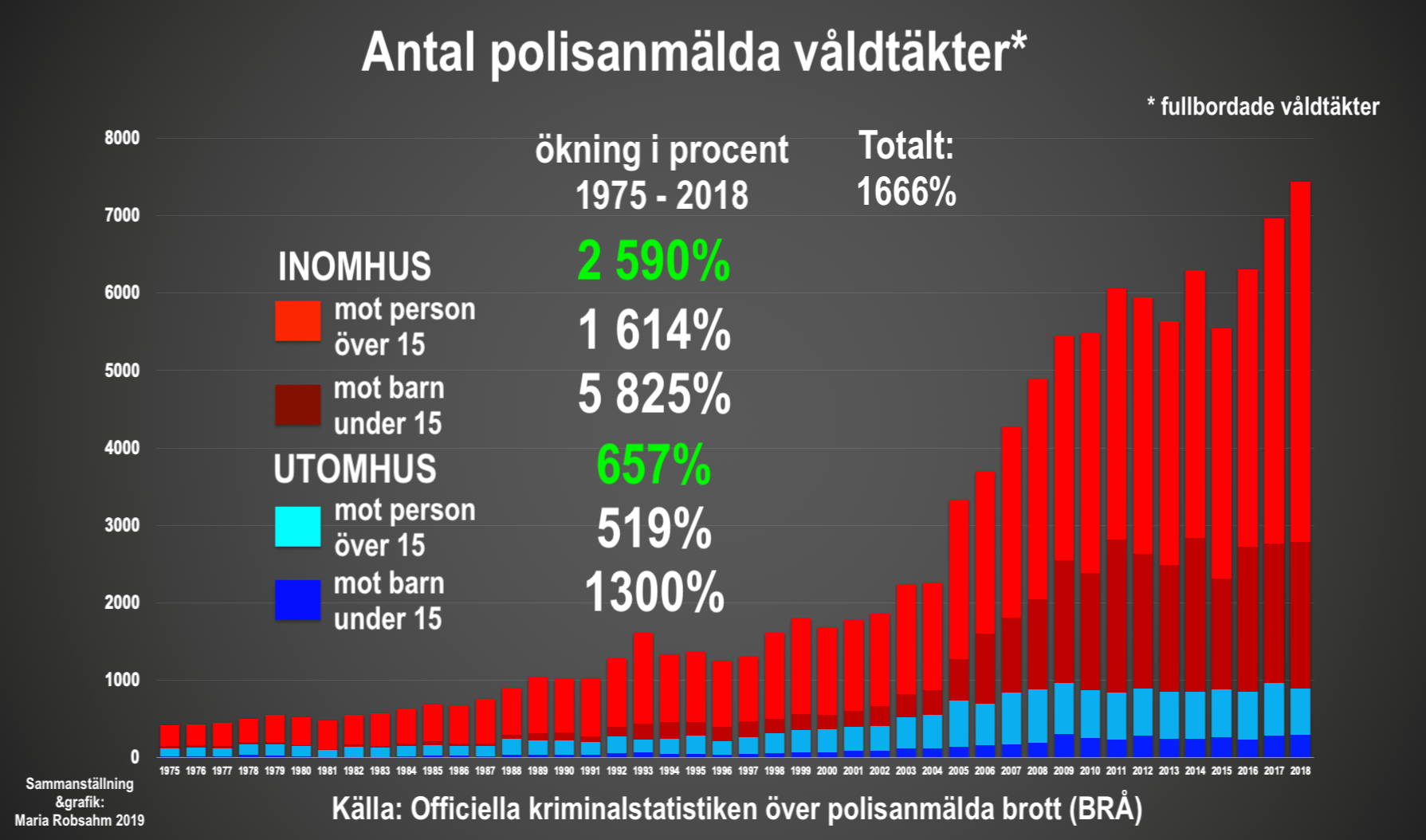 Det verkligt intressanta här är att den stora ökningen är barn under 15 år som har ökat med nästan 6 000 procent. Inte överfallsvåldtäkter utan barnets närstående personer är förövare. Här ska vi ha med oss att vi vet att etniska svenskar är överrepresenterade bland pedofiler. (Källa: Officiella kriminalstatistiken över polisanmälda brott, BRÅ)