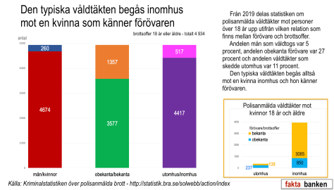 Dessutom gäller fortfarande samma faktum som tidigare, att de flesta våldtäkter sker av en känd gärningsman, inom hemmets fyra väggar. Vidare så rymmer som sagt begreppet våldtäkt flera kategorier såsom, sexuellt ofredande, våldtäkt samt sexuellt utnyttjande och tvång.